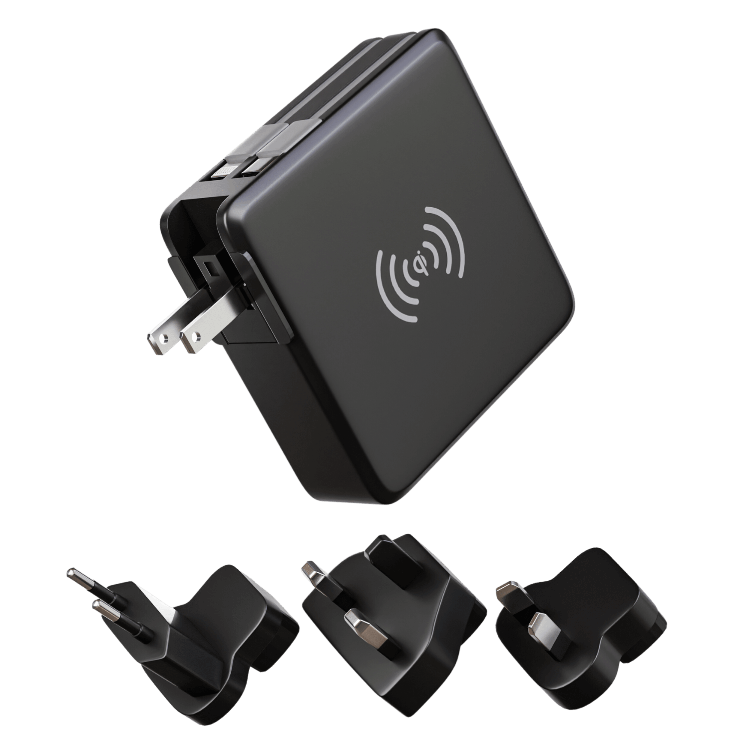 The Universal Power Bank comes with three interchangeable plugs, making it easy to keep your devices charged in most countries worldwide. It supports power outlets in North America, Japan, China, the United Kingdom, Europe, Australia, and Hong Kong.